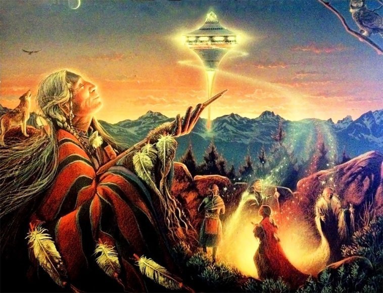 The Hopi as well have their own story of the flood, but it was in fact the third time the world was destroyed at that point. For becoming distant with their creator God, Sotuknang, the world was already destroyed twice before by fire and by ice and was recreated for those who still lived by his laws of creation. Upon the third time of becoming war driven and corrupt, Sotunknang would guide those who remained righteous and true to the Spider Grandmother, who would cut down giant reeds and sheltered them within the stems with water and food. They remained for a long time as the floods. When the flood was over the Spider woman would let them out and they then sent birds to find land; much like in Noah and the Mesopotamian stories, however none of them came back. The people needed to make boats from the reeds and searched for a long time until they finally came upon a sandy beach. Sotuknang appeared to them and showed them as the last of the Third World sank into the ocean.
